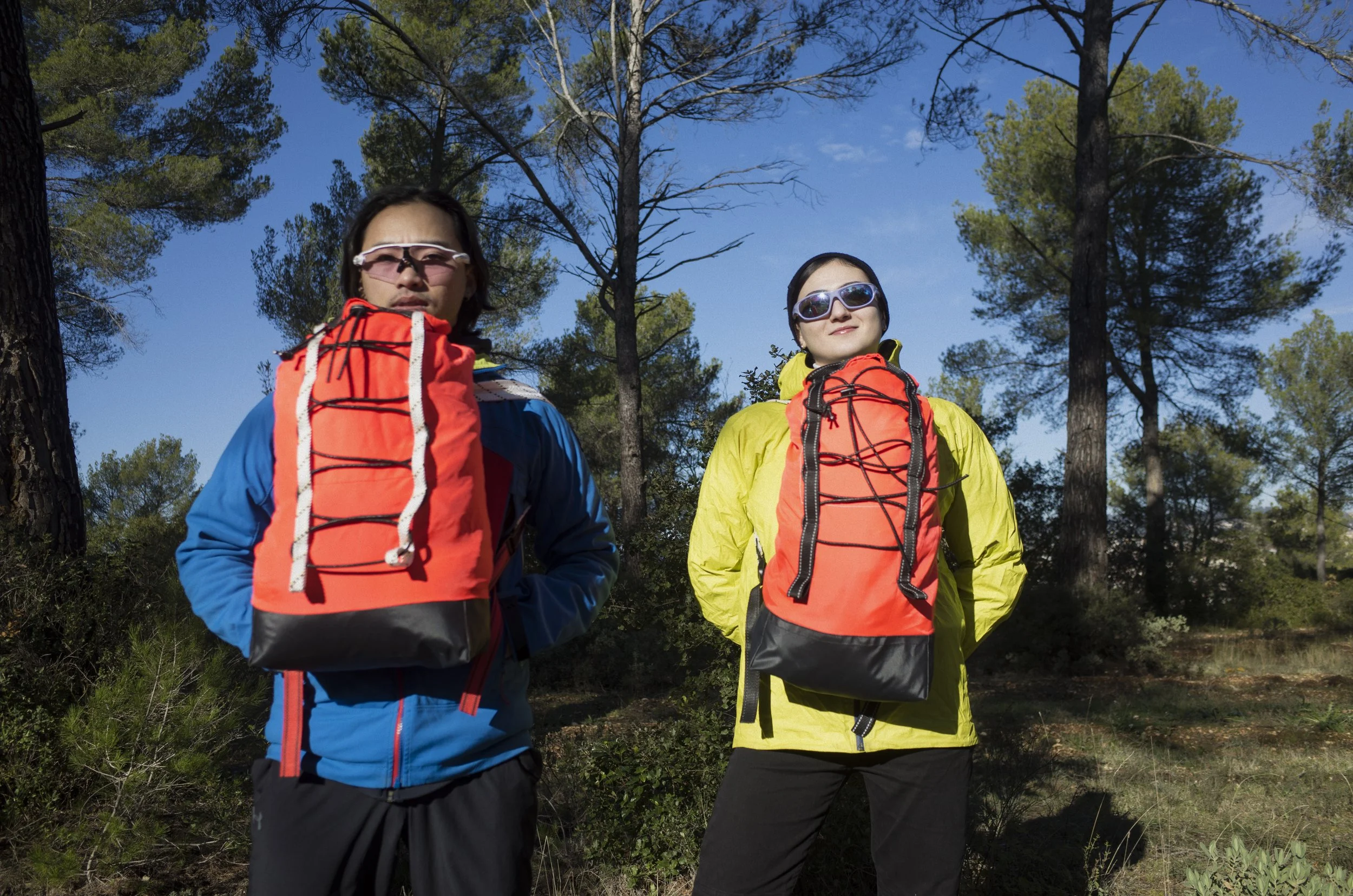 Le sac à dos Calanques trouve son origine dans une collaboration unique entre Cécile de Couzy et l'architecte passionné Sylvain Van de Sype. Sylvain, également artisan du vêtement, a déjà fait ses preuves avec des doudounes créées à partir de doudounes !